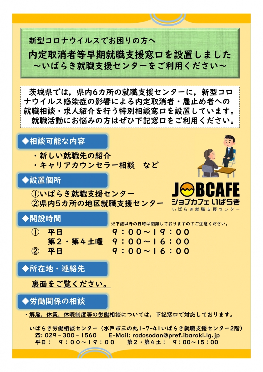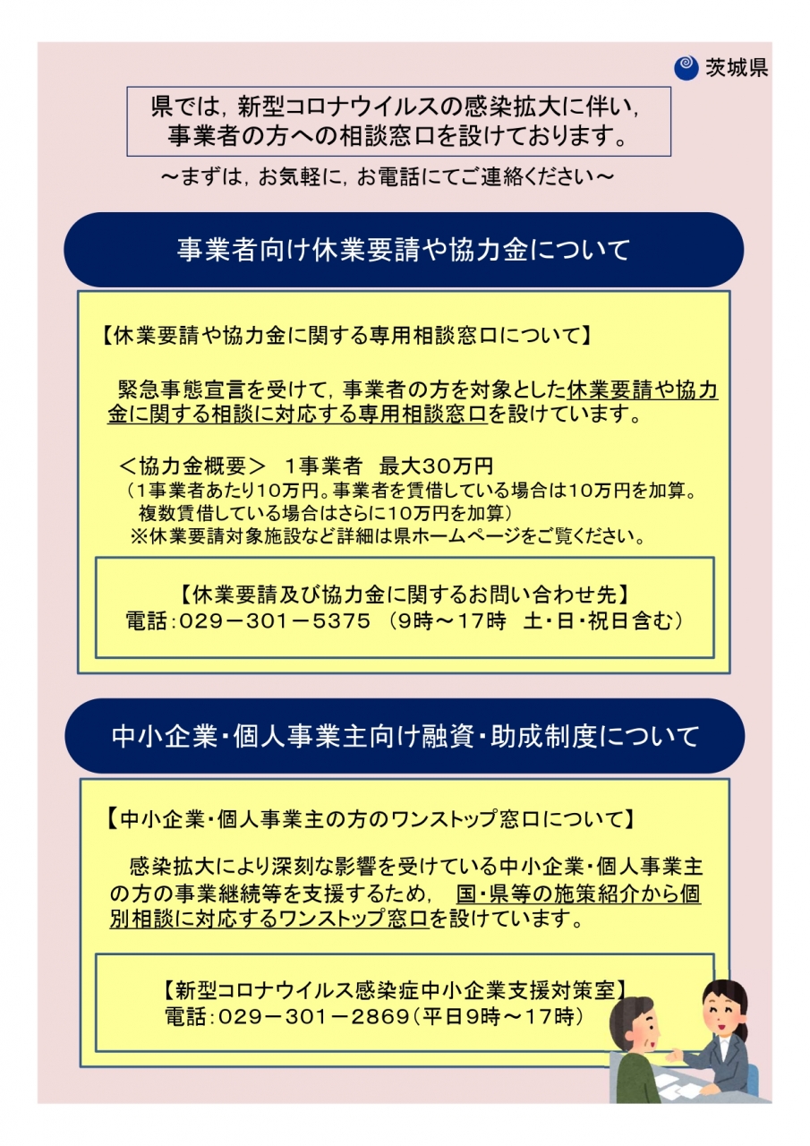 【コロナ】茨城県:休業要請・融資助成制度等相談窓口設置の周知