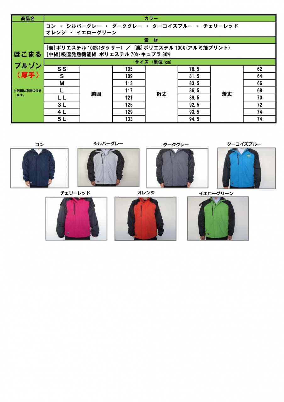 4.取扱商品   ブルゾン(厚手)カラー7色 サイズSSから5Lまで @5,600円(税込)