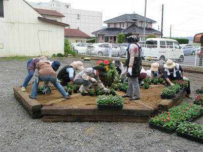 本町通りの場所へ地主さんのご好意により花壇を設営しました。