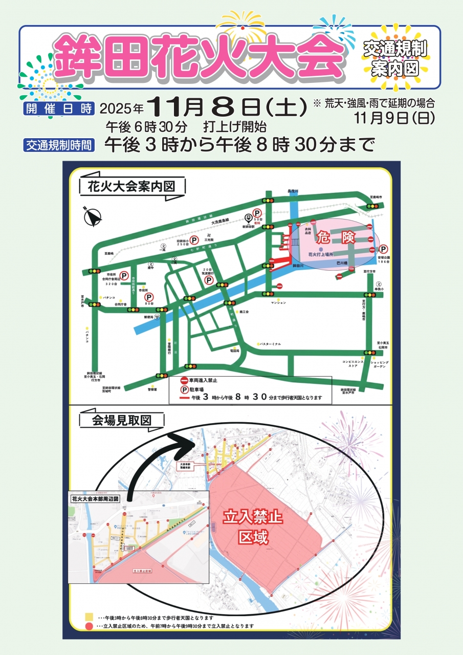 鉾田花火大会会場案内図および交通規制のご案内